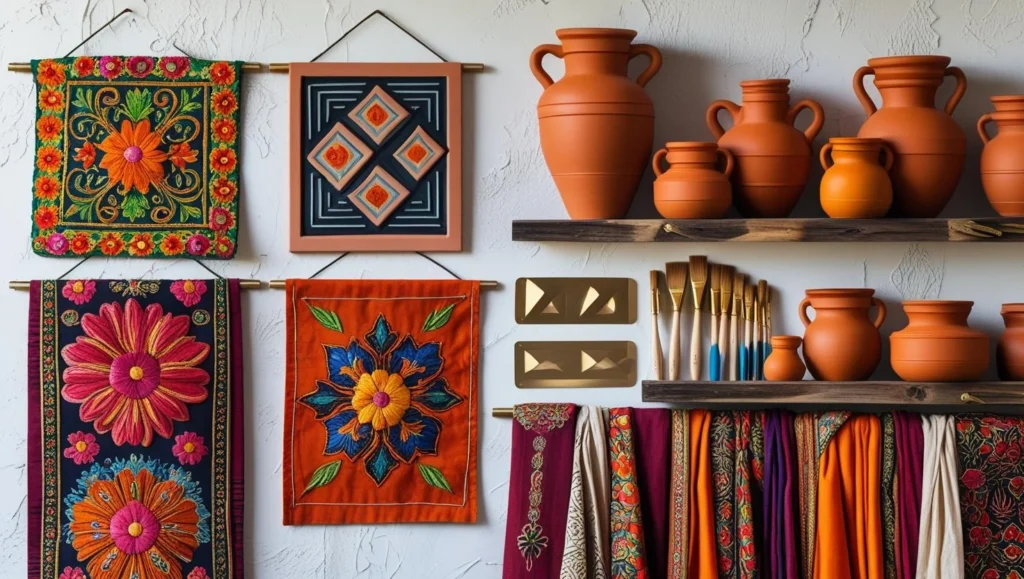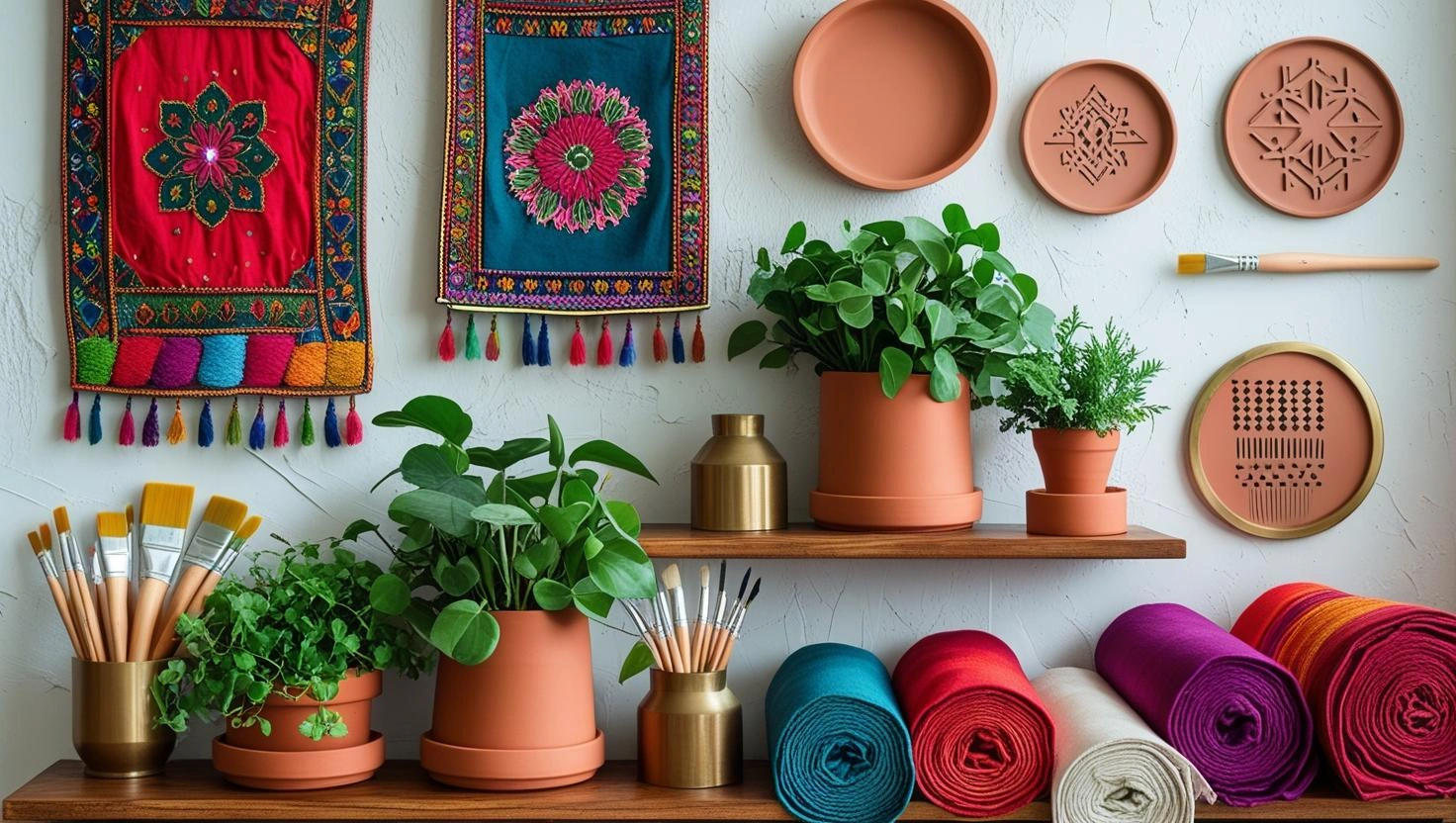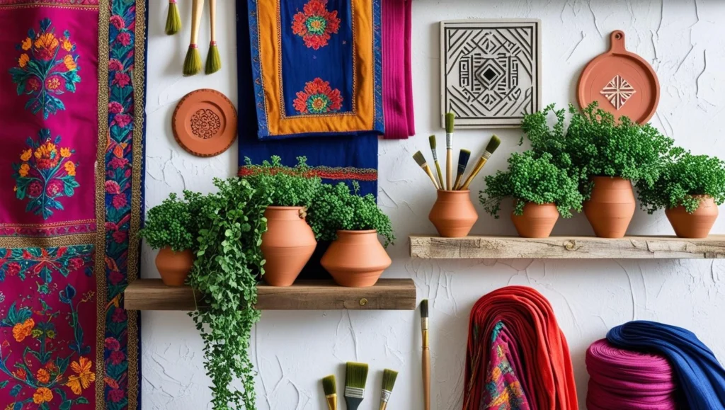 - Pakistani Touch: Use Ajrak or Suzani fabric scraps stretched over wooden dowels.