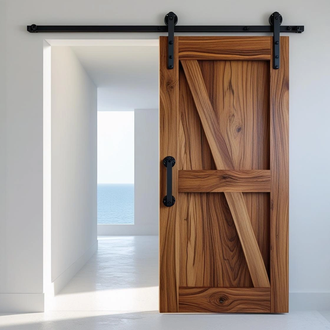 > *Introducing our Teak Wood Sliding Barn Door with Black Hardware* – a perfect fusion of rustic charm and modern functionality for Pakistani interiors. Handcrafted from Grade-A Burmese teak by Karachi’s master carpenters, this barn door features a smooth-glide track system with matte black industrial hardware. The natural oils in teak provide exceptional resistance to Pakistan’s climate challenges while developing a rich silver-gray patina over time.