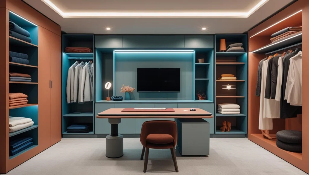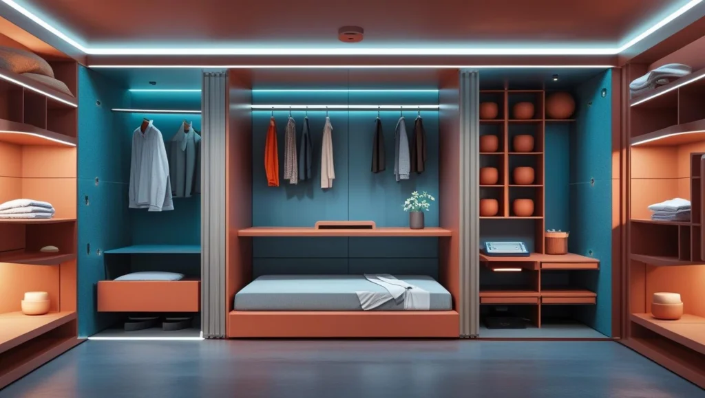 - Function: Voice-activated panels rotate/pivot to reveal hidden kitchens, offices, or beds.